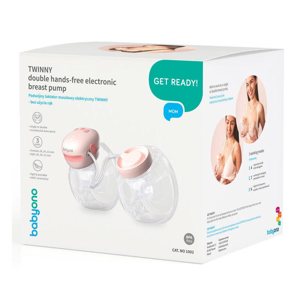 Pompa elektrike e gjirit TWINNY nga BABYONO është versioni më i madh i pompës elektrike të gjirit SHELLY. Twinny është një pompë e dyfishtë gjiri me një guaskë që përshtatet me stilin e jetës aktive të çdo nëne të re. Pa tel, diskrete, e lehtë dhe më e rëndësishmja, pa duar, ju lejon të kryeni detyra të shumta njëkohësisht. Thjesht vendoseni në sytjena tuaj të ushqyerjes me gji – ajo do të pompojë ndërsa ju përqendroheni në detyra të tjera që janë kaq të rëndësishme në jetën e një nëne. Mund ta përdorni Twinny në të dy gjinjtë njëkohësisht ose vetëm në njërin, varësisht nga nevojat tuaja.