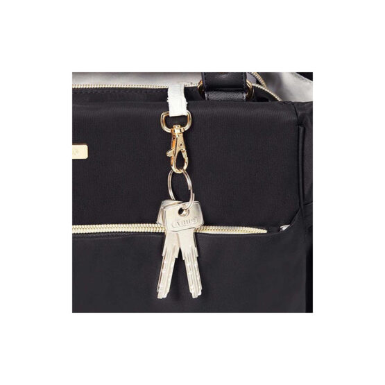 Çanta ka një kordon për çelësa për marrjen e lehtë të çelësave. Gjithashtu ka një xhep me zinxhir me akses të shpejtë për telefonin tuaj. Xhepat anësorë të jashtëm me shirita elastikë ruajnë në mënyrë të përshtatshme shishet e ushqimit dhe pijeve të foshnjës. Xhepi i izoluar brenda çantës ndihmon në ruajtjen e temperaturës së dëshiruar për ushqim të ngrohtë.