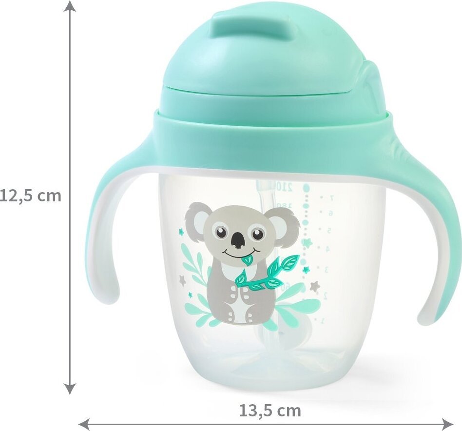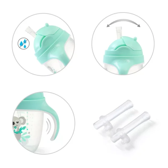 Kjo gote 240 ml me grykë silikoni të butë dhe pipë të peshuar lejon pirjen nga çdo kënd. Perfekte për të mësuar të pini në mënyrë të pavarur – e papërshkueshme nga rrjedhjet, e lehtë dhe e rehatshme për t’u mbajtur.