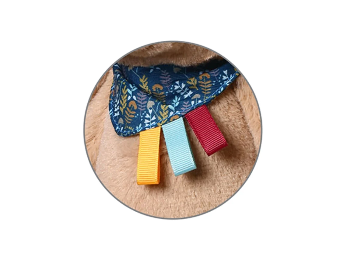 Kjo kafshë pelushi është bërë nga pëlhura delikate, plotësisht e sigurt për lëkurën e ndjeshme të foshnjës suaj. Është jashtëzakonisht e butë dhe e këndshme në prekje, duke e bërë atë lodrën perfekte për përqafim dhe ngushëllim.