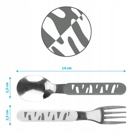 Luge dhe pirun prej çeliku inox janë të destinuara për fëmijët më të rritur që të hanë në mënyrë të pavarur.