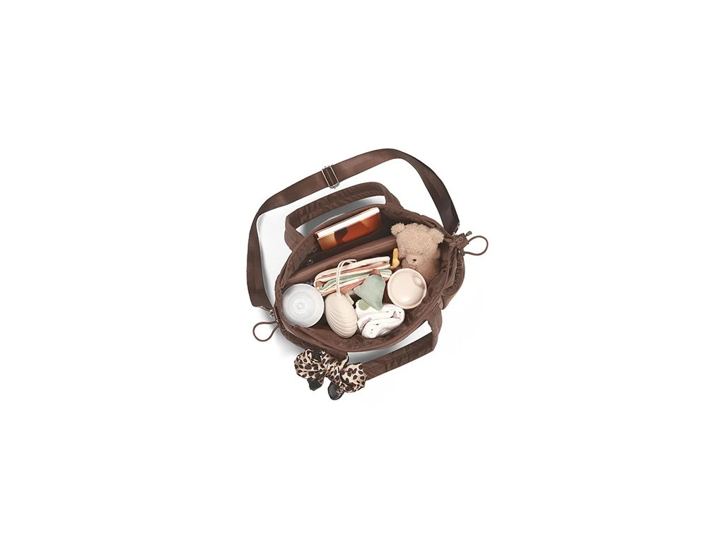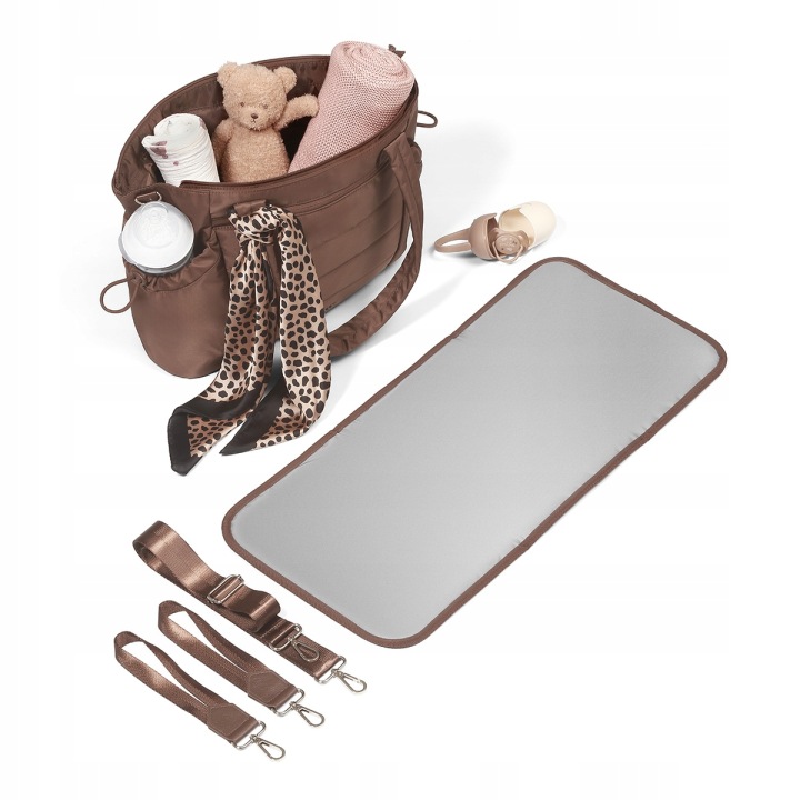 Zbuloni çantën tonë të karrocës CAMI – në një nuancë çokollate në modë, e kompletuar me një shall delikat me printim gepardi. Është mishërimi i elegancës sportive. E projektuar posaçërisht për nënat aktive që kërkojnë një çantë të bollshme, të rehatshme, funksionale dhe me stil. Me kapacitetin e saj të madh, 10 xhepa dhe një rrip çelësi ose biberoni, mund të paketoni të gjitha gjërat thelbësore për nënën dhe foshnjën. Vareni në karrocë ose visheni si çantë të përditshme.
