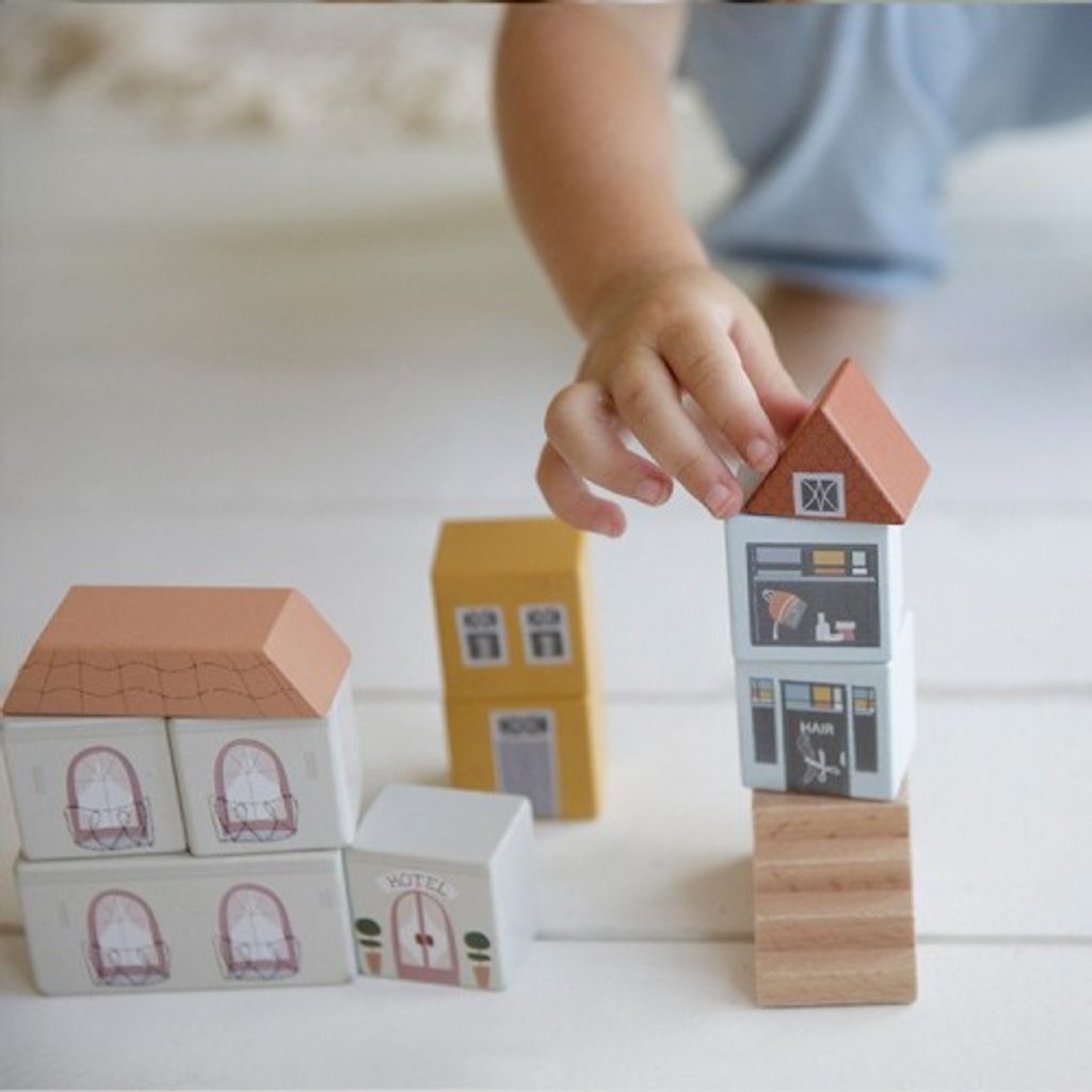 Marka holandeze LITTLE DUTCH prodhon një gamë të gjerë lodrash të bukura. Qëllimi i kompanisë është të krijojë lodra me cilësi të lartë, të sigurta dhe funksionale me një pamje tërheqëse. Seti i trenave prej druri LITTLE DUTCH City. Qyteti prej druri është një shtesë e bukur në setin e trenave prej druri LITTLE DUTCH XXL. Seti përmban 50 blloqe nga të cilat mund të krijoni ndërtesa të ndryshme si dyqane, hotel ose restorant. Shinat prej druri nuk përfshihen në set. Në pikë: një set shtëpish prej druri i përshtatshëm për fëmijë nga 2 vjeç. Një shtesë e shkëlqyer në setin e trenave prej druri LITTLE DUTCH XXL përmban 50 blloqe nga të cilat mund të krijoni ndërtesa të ndryshme. Mbështet imagjinatën e fëmijëve. Shinat prej druri nuk përfshihen në set. I bërë nga dru i qëndrueshëm i çertifikuar nga FSC.