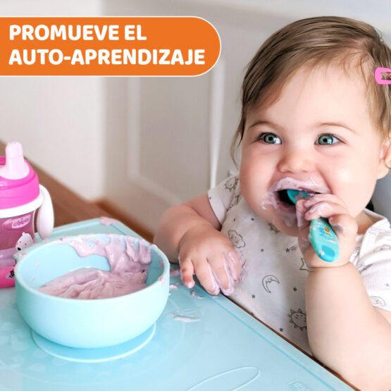 - Tas 100% silikoni me kapak thithës në fund, ideal për të inkurajuar fëmijën të jetë autonom dhe për të parandaluar derdhjet gjatë vakteve.